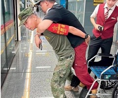 李小平帮助一名双腿受伤的旅客乘地铁去医院就医 无锡东站,熙熙攘攘的人群中,一位头发花白、胸前别着伤残军人徽章的老人,身着红马甲,步履或许略显沉重,眼神却明亮如炬。 他叫李小平,今年62岁,是一位心脏受过战争创伤的伤残军人。硝烟散去40载,他...