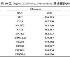 〔摘要〕 目的 探讨Src/VEGF信号通路对补肾活血汤治疗乳腺癌骨转移的影响及作用机制。方法 通过TCMSP、GeneCards数据库,挖掘出补肾活血汤治疗乳腺癌骨转移的潜在靶点,并将靶点进行拓扑分析和GO、KEGG富集分析,对拓扑分析排...