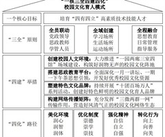 摘要:湖南财经工业职业技术学院创建“一核三全四建四化”校园文化育人模式,对标培育“四有四立”技能人才总体目标,通过“美化环境、优化制度、强化精神、转化行为”四大建设路径,建成建好“润心、润智、润体”的环境文化,“崇德、崇学、崇技”的制度文化...