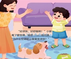吃过午饭后,小新一个劲地说:“好热啊!好热啊!快要中暑了!” 小狗球球热得趴在地上直喘(chuǎn)气。 妈妈见状马上打开了空调。...