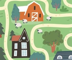 运输车来了,它来给小明家送砖。 看,正在建房的那家就是小明家。 村里的道路那么多,一条一条又一条,哪条通向小明家呢? 小朋友,请你当向导,在通往小明家的路上画上线,帮助运输车完成任务吧。...