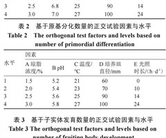摘 要:为探讨星孢寄生菇个体发育与可控环境因子的关系,采用L16(45)正交试验的方法,研究了5种可控环境因子对该菇菌丝生长、原基分化以及子实体发育的影响。结果表明,星孢寄生菇菌丝生长的最佳组合为温度25 ℃、琼脂浓度2%、pH 7....
