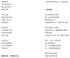 沧海奔流 知青毅然插队 终日播种地球 收获桑田 师德高尚 学术求真务实 潜心教书育人 桃李芬芳 社员之家 建设北海市委 关爱工作人生 俨然慈父 政务有为 五好四有干部 永葆为民情怀 初心不改 志在远方 无畏山高路远 历尽千帆凯旋 笑看风云 ...