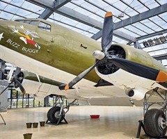 美国飞虎队桂林遗址公园展出的全球最后一架飞越驼峰航线的C- 47的运输机。落霞/摄 在柳州军事博物馆飞虎队常设展览展厅背后的空地上,摆放着一个大石碾。它伤痕累累、黑黄斑斓,显示出历史沧桑,默默讲述着中美两国人民在广西联手抗击日本军国主义的激...
