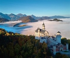 当地时间2025年10月15日,德国南部霍恩施旺高,从空中俯瞰被秋日森林环绕的德国新天鹅堡。新天鹅堡是联合国教科文组织世界遗产,坐落在巴伐利亚山脉之上,云海翻腾。这座19世纪的罗马复兴式宫殿是世界上最著名的地标之一,每年约有150万人参观。...