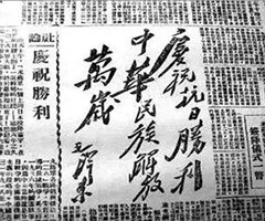 1945年8月15日,日本宣布无条件投降。9月2日,在同盟国联合受降仪式上,日本政府代表在投降书上签字。9月3日,《新华日报》刊载毛泽东的题词:“庆祝抗日胜利,中华民族解放万岁!”在陕北延安,2万多人举行庆祝大会,火炬映红了波光粼粼的延河水...