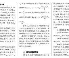 [摘 要] 数学的发展是和人类物质文明和精神文明的发展交融在一起的,基于数学文化背景下的数学学习,可以使学生在学习数学知识、思想方法的基础上进一步从科学的视角认识生活、认识世界,有利于学生形成正确的世界观和人生观. 古往今来,数列始终是数...