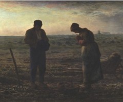 法国巴比松村。 夕阳西下。 一对农村夫妇,劳作一天后,听到远处教堂传来的钟声,便放下农具,在田野中肃立祷告。男人手里拿着帽子,笨拙地站着,女人虔诚地擦着双手,生活的粗糙和劳作的疲惫,随着晚祷的钟声消失在无边无际的旷野中。 晚霞逐渐消退,夜幕...