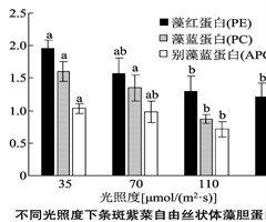 摘要:通过对光合色素及叶绿素荧光测定,研究了条斑紫菜“苏通2号”自由丝状体在不同光照度下光合生理特征。结果表明,随着光照度的上升,样品藻红蛋白、藻蓝蛋白和别藻蓝蛋白含量均呈下降趋势,且高光照度处理组要显著低于低光照度处理组,叶绿素a的变化与...