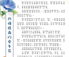 一株柳树被虫蛀空,大风将它拦腰折断。然而,它仍然活着。第二年春天,它发出了新芽。新芽长成了婀娜的柳枝。 牵牛花从它的脚下钻出来,伸展柔软的枝叶,紧紧地缠绕着柳树往上爬。 柳树皱着眉头呵斥:“缠着我干什么?你这讨厌的小东西!” 牵牛花掏出一朵...