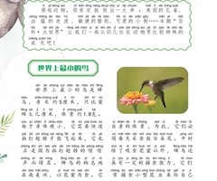 提起动物,你肯定能说出一大串:美丽的孔雀、凶猛的老虎、敏捷的猎豹、可爱的小狗……本期“百科·大世界”让我们一起认识几位在动物界比较特殊的成员吧! 世界上最小的鸟 世界上最小的鸟是蜂鸟,身长约5厘米,只比蜜蜂大几厘米,体重约1.8克...