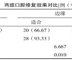 【摘要】 目的:探讨玻璃纤维桩在前牙冠折修复治疗中的效果。方法:选择2020年1月—2021年12月新余市妇幼保健院收治的60例口腔修复患儿,按随机数字表法将其分为两组。对照组(30例)采用铸造金属桩修复,观察组(30例)采用玻璃纤维桩修复...