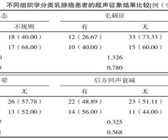 乳腺癌患者超声征象与病理组织学类型的相关性分析
