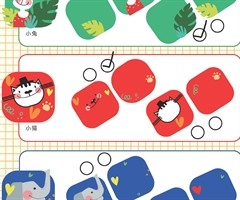 找一找,左侧小兔、小猫、大象的图片是由右边4张图...