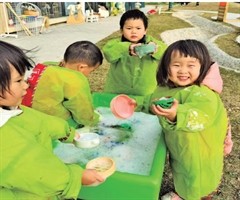 玩水是托班孩子颇为喜爱的活动。在游戏中,教师该如何真正做到“和孩子们一起玩"?两次截然不同的玩水游戏让我们对此有了新的思考。 一场由成人主导的玩水游戏 一个上午,我在巡班时发现托班教室外的草地上分外热闹。吴老师和身着防水服的孩子们...