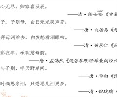 在中国传统文化中,母亲的形象是慈爱的,值得尊敬的。小时候,我们常常围绕在母亲身边。长大后,我们虽与母亲相隔万里,但心中依旧牵挂着彼此。下面让我们一起跟随诗人的脚步,看看他们是如何表达对母亲的思念之情吧! ●爱子心无尽,归家喜及辰。 ——清&...