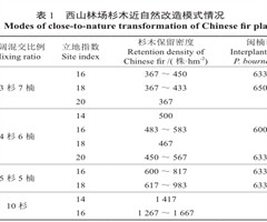 摘 要:【目的】杉木林下套种闽楠的近自然改造模式是当前我国杉木人工林近自然改造的主要技术模式。研究杉木-闽楠不同近自然改造模式对杉木林分生长以及材种结构的影响,可为杉木大径材培育目标下筛选适宜的杉木-闽楠近自然改造模式提供重要依据。【方法】...