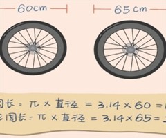 周末,我和弟弟来了一场骑车比赛。 第一轮比赛,我以微弱的优势先到终点。 弟弟不服气,说: “我要在战略上贏你。 好啊,那我们就来研究一下各自的“战略作战工具”吧! 我先在公园边的商店买了一条皮尺,量了量自行车的车轮直径。我的车轮直径是60厘...