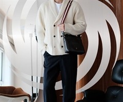 Bally 2025秋冬男士骨瓷白开衫&优雅黑西裤&Outline 羊毛针织面料运动鞋&Ray牛皮革斜挎包_纪焕博演绎 冬季穿搭能有哪些新思路?演员及超模纪焕博带来轻盈又保暖的搭配方案。他以Bally 2025秋冬男...