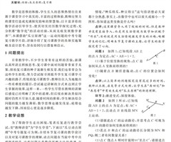 摘要:积累是解题的前提,平时积累的知识、方法、经验都是用来解决“新问题”的有力武器.解题教学应注重引导学生产生丰富的联想,在挖掘题目的已知条件、深刻分析图形结构特征的基础上,利用旧知,构造辅助线,利用已有结论、方法拟定解题思路与方法.同时,...