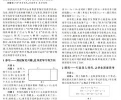 摘要:通过适切而有效的探究活动设计,引领学生亲历深度探究的过程,可以让学生的高阶思维能力得到锻炼与发展.文章以“平行线”的复习课为例,阐述了发展高阶思维能力的过程,并提出了精设活动是思维进阶的前提、学会等待是促成高阶思维的根本感悟. 关键词...