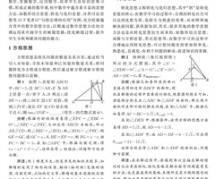在初中数学教学中,教师既要重视知识的传授,又要重视挖掘数学思想方法,以此让学生更好地理解数学、掌握数学、应用数学,培养学生良好的思维习惯,形成正确的数学观.初中数学中蕴含着丰富的思想方法,如数形结合思想、转化与化归思想、分类讨论思想等.以下...