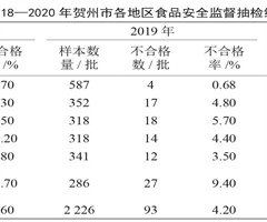 摘 要:本文分析了2018年至2020年贺州市3县2区食品安全抽检和风险监测的情况,得出贺州市各县(区)食品安全状况。近3年来,贺州市食品安全总的抽检量分别为1 308批、2 226批、7 466批呈递增趋势,而抽检不合格率分别为6.2%、...