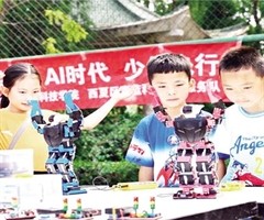 7月23日,小朋友在活动现场观看机器人表演。当日,中央宣传部和宁夏回族自治区党委、政府联合主办的2025年全国文化科技卫生“三下乡”集中示范活动在宁夏青铜峡市举行。来自宣传、文化、科技、卫生、教育、农业、司法等方面的专家和志愿者,在青铜峡市...