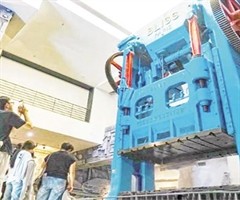9月7日,在广西柳州工业博物馆,游客在参观20世纪80年代柳州微型汽车厂从法国引进、用于汽车大型冲压件生产双动压力机。 喻湘泉摄...