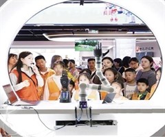 10月25日,浙江省少年儿童书画艺术大赛获奖儿童走进杭州文三未来科技体验中心,亲身体验“艺术+科技”的跨界魅力。图为儿童参观仿生机械臂和机械手。 肖健摄...
