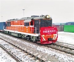 12月18日,中国铁路哈尔滨局集团有限公司今年的首趟国产汽车配件中欧班列在哈尔滨国际集装箱中心站启程(无人机照片)。 王松摄...