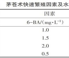 摘 要:目的:提高茅苍术快繁及实现大规模工厂化生产,在濒危植物茅苍术的快速繁殖中采用正交试验,以确定适宜的茅苍术生根及增殖培养基。方法:采用L9(34)正交设计,以茅苍术生根率和增殖率为指标,研究茅苍术培养基、NAA、6-BA、活性炭、糖5...