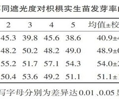 摘 要:为探讨遮阳网不同遮光度对枳椇实生育苗生长的影响,该试验分别设置4种处理(即全光照、30%遮光度、50%遮光度、70%遮光度),并对枳椇实生育苗的发芽率、存活率、苗高、地径进行调查与分析。经方差分析和显著性检验,结果表明,不同遮光度对...