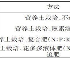 摘要为明确采用营养土育秧时的最佳培肥配方,以南粳9108为材料,选用不同肥料配比进行营养土培肥,共设计14个处理,分别为处理1,不添加肥料;处理2基质配比为育秧绿:床底肥:土 =1:0.5:200 ;处理3为育秧绿:调酸剂:土 =1:0.1...