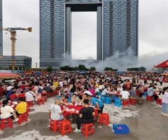 2023年6月23日,广州海珠区沥滘村,村民在地标建筑“广州之窗”前吃龙舟饭 2023年是民俗活动在民间重启的一年。三年新冠疫情过后,对传统的回归比以往更为盛大。 广州市最大的民间庙会“波罗诞”在农历二月十一至十三举办。“波罗诞”即“南海神...
