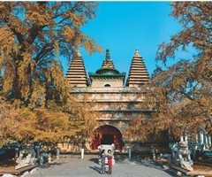 > 金秋真觉寺宝塔真觉寺,俗称五塔寺,始建于明永乐(1403—1424年)中,毁于清末,现仅存金刚宝座塔。现为北京石刻艺术博物馆,它的露天陈列,按内容、功用分为八个居区,展出历代石刻文物,加上库藏的历代石刻,共计千余种。其中,有北京地...
