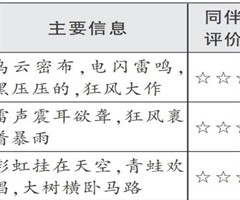 课前准备 1.学生:在美术老师的指导下,熟悉乌云、风、雨、树、蜘蛛、闪电、房子、青蛙、池塘等景物的画法;在科学老师的指导下,搜集关于雷雨的资料。 2.教师:创编“垂"字的书写指导口诀,剪辑 暴雨前、暴雨中、暴雨后的视频 学习过程 ...