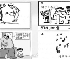 一、先看“热闹”:整体把握漫画 1.粗知漫画内容。 师:同学们,这节课我们一起来看漫画、写漫画。老师带来几幅漫画,请你们看一看漫画中画了什么,看懂哪幅说哪幅。 (出示)生:我看懂了第三幅。这个爸爸手里拿着书,书名是《孩子偷东西怎么办?》。他...
