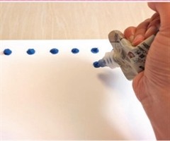 请准备一些蓝色系的管装丙烯颜料、白卡纸、画笔、刮板等。1.首先,取一管蓝色丙烯颜料,在白卡纸上规律地挤压出大小差不多的蓝色圆点。2.接下来,在点好的圆点空隙处,有规律地点一些白色圆点和其他深浅不同的蓝色圆点。3.等点完全部圆点后,将一个刮板...