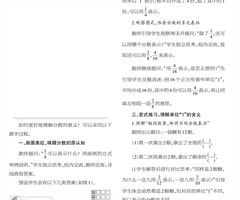 (五年级) 如何更好地理解分数的意义?可以采用以下教学过程。 一、画图表征,唤醒分数的原认知 教师提问:“[14]可以表示什么?用画图的方式举例说明。”学生独立思考,组内交流,教师巡视,寻找典型答案。 预设学生会有以下几类答案(如图1)。 ...