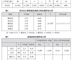 摘要:本研究选取K市四所小学五、六年级中的344名学生为研究对象,对小学高年级学生的计算思维水平进行描述性、差异性、相关性和回归分析,并通过结构方程模型(SEM)挖掘小学高年级学生计算思维水平的影响因素。研究结果表明:K市小学高年级学生计算...