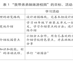 摘 要:“我带弟弟妹妹游校园”启动课的任务为“设计路线”和“初步学习介绍”。完成“设计路线”任务时,侧重多学科知识的综合运用;完成“初步学习介绍”任务时,则更侧重语文学科中表达能力的训练。两个任务紧扣教学目标,具有内在关联,共同服务于学生的...