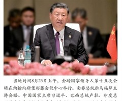 (《祖国》/张帅 综合报道)据新华社消息,当地时间8月23日上午,金砖国家领导人第十五次会晤在约翰内斯堡杉藤会议中心举行。南非总统拉马福萨主持会晤。中国国家主席习近平、巴西总统卢拉、印度总理莫迪和俄罗斯总统普京(线上)出席。五国领导人围绕“...