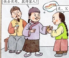 一父子性刚,平素不肯让人。一日,父留客饭,命子入城买肉。子买讫[注,将出城门,值一人对面而来,各不相让,遂挺立良久。父寻至见之,对子日:“你快持肉去,待我与他对立着。” (《笑林广记》) 【注释】 买讫(qi):买完有一对父子,性子都很,平...