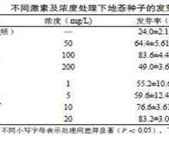 摘要:为探究地菍种子萌发特性及植株耐阴性,研究以清水浸泡为对照,分别采用不同浓度的赤霉素(GA3)(50、100、200 mg/L)和6-苄氨基嘌呤(6-BA)(1、5、10、20 mg/L)浸泡地菍种子,分析不同激素及浓度对地菍种子发芽率...