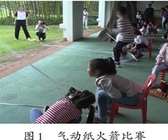 五月初的一个下午,在宋庆龄幼儿园的草坪上,正在举行一场气动纸火箭大赛(如图1)。25支大班代表队依次站在了各自的发射位前,小朋友三人一组,听到裁判的指令后开始发射。“嘭”的一声,纸火箭在观众的加油与欢呼声中冲向云霄,落在了草坪的远端。裁判拉...