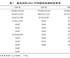 摘 要 为探究微波处理对油菜种子活力的影响,以3个品种的油菜种子为试验材料,设置5个微波功率、12个时长处理,分析不同处理下油菜种子的发芽率、发芽势、发芽指数、正常苗率和种子浸出液电导率变化规律。结果表明:不同微波处理下,各试验材料的种子活...