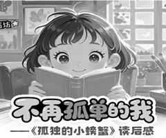 最近,我看了一本书,叫《孤独的小螃蟹》,书里讲了一只小螃蟹在失去朋友的陪伴后,慢慢成长,摆脱孤独的故事。有时候我觉得自己就是那只小螃蟹。 孤独的小螃蟹VS孤单的我 故事的开头是小青蟹因为想去更好的地方住,离开了小螃蟹,小螃蟹觉得很孤单。 我...