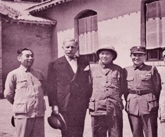 组织指挥海南岛战役的指挥员合影。前排左起:张池明、冯白驹、邓华、韩先楚、李作鹏一1949年10月,人民解放军已夺取蒋家王朝大半河山,正奋志于解放全中国。17日,第四野战军第15兵团解放广州第三天,毛泽东即致电林彪,在兵力配置上要求:“……使...