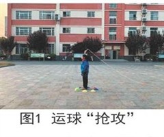 一、运球“抢攻” 游戏目的:提升运球突破时重心转换和急停、急起能力,培养学生勇敢果断的品质。 游戏方法:3~5名学生1组,1名学生手持3m跳绳的把手一端,站在直径6m的圆圈圆心处,其他学生站在圆圈外做运球动作,围绕圆内学生放置一圈标志盘。游...